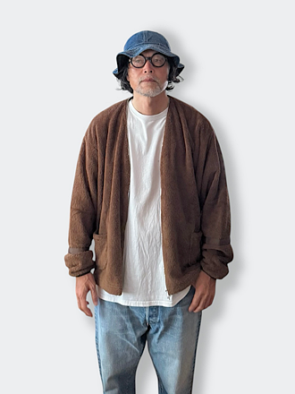 ソフトで暖かい毛足の長い両面フリース素材を使用したフルジップカーディガン。